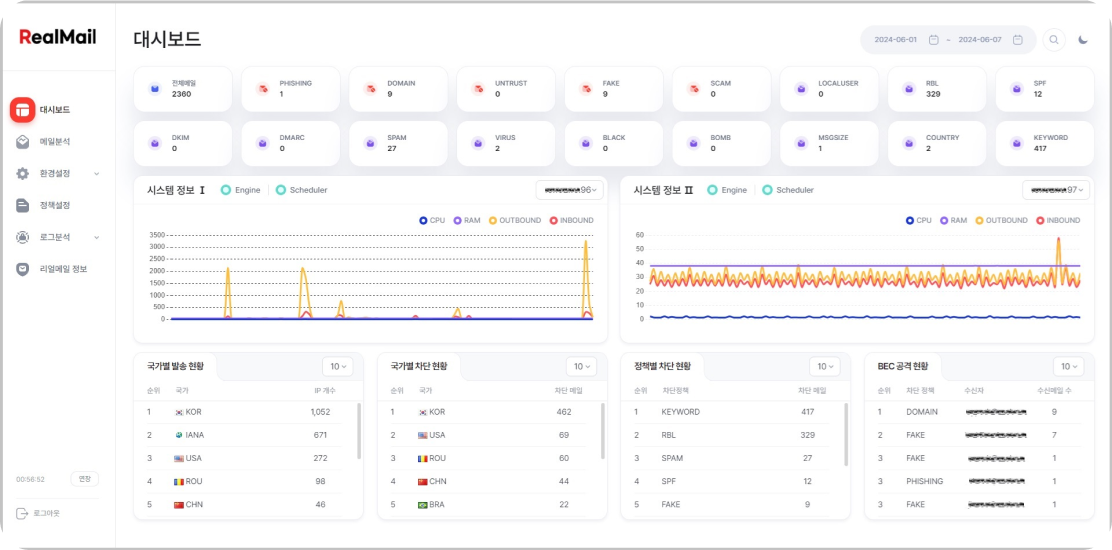 직관적인 인터페이스를 통해 메일 서버에 대한 종합적인 정보를 한눈에 확인 가능하며, 보안 사고를 원천적으로 방어함에 따라